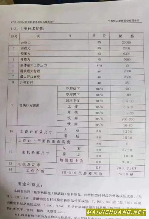在位出售恒力2015年生产大开口大行程2000吨框架液压机开口4米行程3米台面3.6米x2.5米一台,开口2.5米行程2米台面3.2米x2.5米一台__ 信息编号:S358566 |
