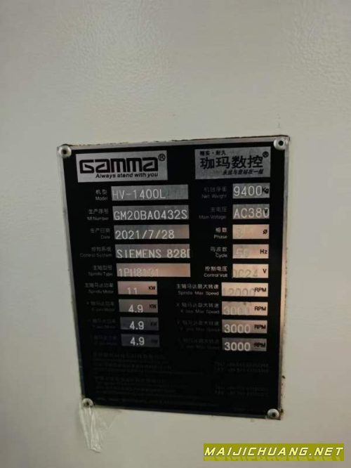 | 准新台湾珈玛HV-1400L加工中心,重型机自重9400KG安装. |