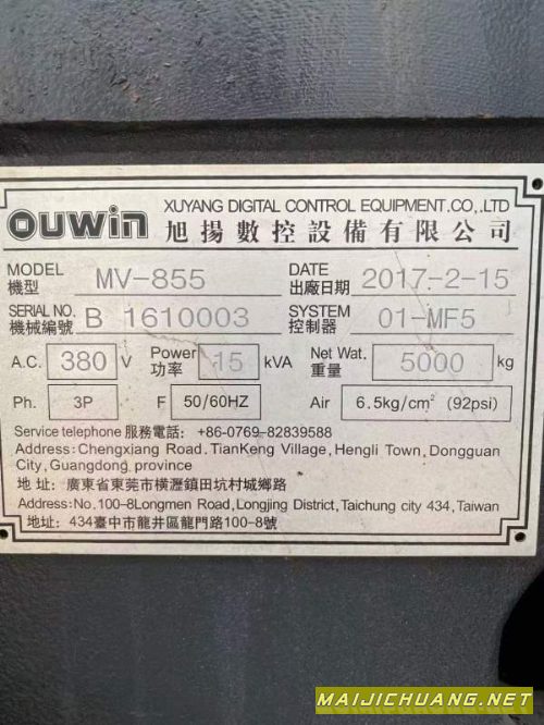 洛阳现货:旭阳855一台,罗毅主轴12000转,带油冷机,法拉克mf系统,三线规,2017年产,带刀库,有兴趣联系!! 信息编号:S036875 |