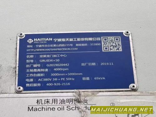 | 海天GRUll3650龙门加工中心工作台35米,门宽3.6米主轴. |